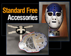 The option of a backplate assembly and foam padding or commemorative plaque are standard accessories included free with every mask.